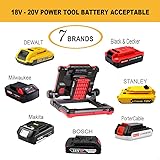 7 brands of batteries of various models can be installed, Compatible with 18-20V DEWALT, MILWAUKEE, Black&Decker, Porter cable, STANLEY, BOSCH, Makita Battery , with battery conversion socket attached, 1 Tool only 3 LIGHT MODES:120 SMD led lights, 25 W super bright and pure white, close to natural light, three kinds of brightness can be adjusted, 1100 LM, 2100 LM, 3500 LM, to meet a variety of lighting needs Innovative patented design: Foldable base & Magnetic Mounting Clips and Integrated Hanging Hook. The lamp head can be rotated and adjusted 180 degrees, and the bracket can be carried by hand or hung by its own hook by selecting the fixed position of the nut. Four strong magnets are used at the bottom of the bracket, which can be used to adsorb on the surface containing iron, such as car engine hood, iron pillar, refrigerator door, etc., to release hands to the greatest extent Rechargeable: The USB port is really handy so you can use this to charge your mobile phone, iPad, iPod and other small electronic devices, output: 5V DC, 1 A Portable, light weight and pretty compact, low power consumption