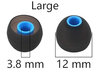 - Features BLLQ high quality soft silicone material replacement earbuds [inner hole 3.8mm,fit for most in-ear headphones]. Color: Clear black + blue . Water-washable, durable, flexible, antistatic, removable and replaceable. High Quality silicone material provide more noise isolation, in-ear stability and a lasting comfort. Compatible with BeatsX , SENSO , TOZO , SONY in-ear Bluetooth Headphones and other inner hole from 3.8mm-4.2mm in-ear headphones. Package includes: Eartips 12PCS[Large Size]. a Plastic Box for eartips, (Earbuds Only ,Earphones not included).