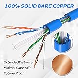 Cables Direct Online Cat6A 1000ft Cable Blue Solid Bare Copper 23AWG 4 Pair Bulk Ethernet PoE++ (4PPoE) Wire, Unshielded Twisted Pair (UTP)