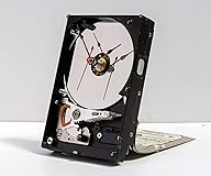 • This is a real 3 1/2in computer Hard drive that has been transformed into a working desk clock using a USA made quartz drive movement. The hard drive cover was used to make the base. The clock measures 4"w x 6"h, and runs on 1 AA battery, included. It will make a great conversation piece on your desk or a special gift for that geek you know who is so hard to shop for. Since these clocks are made from recycled computer parts, there will be signs of use and age. Thanks for looking.