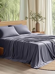 AWARD-WINNING COOLING: Made from rayon derived from bamboo, these cooling sheets reign supreme in breathability and moisture-wicking, and are endorsed by Forbes Vetted, NBC, and The New York Post. Banish sticky nights and enjoy cool, cozy slumbers 100% RAYON DERIVED FROM BAMBOO: Crafted from nature’s embrace, the sheet set is completely free of harmful chemicals, cool to the touch, and silky soft without irritating your skin. It proudly passes the OEKO-TEX Standard 100 certification(24.HCN.19195) IDEAL SLEEP COMPANION: Made from 100% rayon derived from bamboo, these bed sheets offer a cool, silky-soft feel. Perfect for hot sleepers, menopausal women, or babies. Available in a range of colors to match your style EASY FIT: Our fitted sheet fits mattresses up to 16" thick. The 360° elastic band ensures a secure fit, eliminating endless fussing. Plus, the envelope-closure pillowcases protect pillows from slipping out EASY CARE: Machine wash in cold water (below 104℉) and tumble dry low. Remove promptly or iron if needed to reduce wrinkles. For stains, pre-treat with laundry detergent instantly before washing. Do not bleach or dry clean to preserve fabric quality WHAT'S INCLUDED: This all-in-one queen sheet set includes a flat sheet (90" x 102"), a fitted sheet (60" x 80" + 16"), and two pillowcases (20" x 30"). Everything you need for a cozy bed setup, all in one package