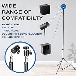 [Maximize Your VR Setup Flexibility] Easily adjust the height of vr stand up to 7 feet 6 inches, accommodating any room size and ensuring optimal sensor coverage for a seamless virtual reality experience. [Effortless Setup and Portability] Collapse the stands to 29 inches for easy transportation and storage. Perfect for taking your VR base station setup on the go or moving between rooms without hassle. [Achieve the Perfect Angle] With adjustable ball head mounts, you can precisely position your Steam VR Base Station 2.0 or Oculus Rift Constellation sensors to enhance tracking accuracy and gameplay immersion. [No More Wall Mounting Hassles] Avoid the inconvenience of permanent wall mounts. These telescopic Vive base station stands offer a no-drill solution, preserving your walls and offering easy repositioning as needed. [Complete Package for Your VR Needs] Includes two durable tripod stands specifically designed for VR sensors. Please note that the Base Station sensors are not included.