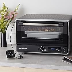 - Easily monitor temperature of food inside the oven or grill with the KitchenAid Programmable Wired Probe Thermometer & Timer. Track cooking progress without opening the door/lid to help maintain even air temperature for the best results. This thermometer is preset with 8 protein settings with multiple taste options. A bright backlit display is easy-to-read. The thermometer comes with a durable 6 inch, stainless steel probe and a 4-foot silicone cord with convenient cord wrap storage system. When food hits the preset time or desired internal temperature, an alarm signal occurs to ensure perfect results. HELPFUL HINTS: Digital thermometers are NOT meant to be left in food during cooking. The plastic and electronic components could be damaged with excessive heat. Only the wired probe should be in the oven/grill but should not be exposed to temperatures exceeding 482°F(250°C) or in contact with direct flames. NOTE: The thermometer and timer function independently and cannot be used together. Programming one will disable the other. IMPORTANT: Thermometer will be hot after use. Use potholders or oven mitts when handling hot thermometer.