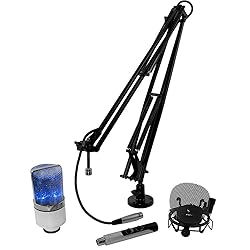Professional look and feel with the radio-style desk stand Pop filter and shock mount eliminates plosives for clear speech and dampens vibrations for pristine sound Included: MXL 990 Microphone, MicMate Pro XLR to USB converter, shock mount, pop filter, and a desk boom stand