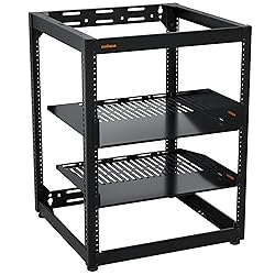Includes all the goodies you need to rack 'em up: Entire 15U open frame rack structure, 4x leveling feet, 1x 1U vented shelf (15.12" deep), 1x 2U vented shelf (18" deep), and 25x rack mounting screws. Is it Christmas in here or is that just me? Open design and included vented shelves optimize air flow, keeping even today's hottest, high-end networking and AV components cool. Assembly is required, but it's simple. With all the included hardware & witty instructions, you'll have your rack ready for servers & networking gear in under 20 minutes. This rack's 20.40" deep design means it's perfect (and practically begging) for your networking, AV and rackmounted components up to 19" deep. It's ready to hang! (On the wall, we mean.) Wall-mounted or standing strong on included leveling feet, this rack's versatile design is ready to take on your setup... whatever that may be.