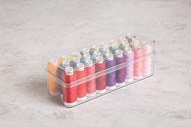 26 Spools: This thread set features 220 yard spools of 50-weight thread made from three plies of 100% cotton. 100% Cotton: Extra-long staple cotton produces a smoother thread with less lint. Assorted Colors: Featuring a rainbow of Connecting Threads' most popular colors including a range of red, orange, yellow, green, blue and purple hues Satin Finish: Essential Thread is satin-finished for a gently lustrous sheen. Great for Crafting: Essential Thread spools fit standard sewing machine spindles and are great for all levels of quilting and sewing projects from beginner to professional.