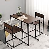 ♛ 3 Piece Dining Table Set Dimensions: L*W*H=35.4 *18.5*29.7 Inch.(L*W*H=90*47*75.5CM). There may be 1 inch difference in measurement since it is hand measured, color maybe a little different due to different monitor settings. ♛ Durable & Stable: Made of thickened laminated wood panel with high glossy finish, waterproof kitchen table and chairs for 2, anti-scratch and easy to clean.Heavy duty powder-coated metal materials, which ensures stability and durability. ♛ Nesting Design: 3 pieces dining tables set includes 1 table and 2 chairs,and the chairs can be nested nicely beneath the table, suitbale for small space. ♛ Multi-Function: Perfect size for your small studio apartment or a small dining room.The wonderful kitchen table set for small space also could be used as a computer desk or a study desk. ♛ ★★★★★Customer Service: We provide quick customer service, if the furniture arrives with damages, scratches or anything you feel unsatisfied with it, please contact with us at the first time, we will give you a satisfied answer