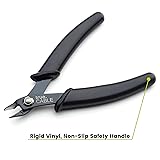 RAZOR-SHARP PRECISION: Hardened high carbon steel flush cutters with precisely aligned parallel jaws for clean, flush cuts on copper wire up to 16 AWG (∅1.29mm). Not for use on steel wire. COMFORTABLE ERGONOMIC DESIGN: Internal wire spring for effortless operation with rigid vinyl non-slip handles reducing hand fatigue during extended use - great for electronics work and jewelry making. PROFESSIONAL QUALITY CONSTRUCTION: Strong riveted design with black oxide coating prevents rust and corrosion, ensuring these diagonal cutters maintain their edge and alignment longer than competitors. PRECISION CUTTING EDGE: Slightly radiused tips prevent conductor nicking while maintaining sharp flush cutting capability. Great wire cutters for crafting, jewelry, and ethernet cable preparation. ✓ FIELD TESTED, CUSTOMER APPROVED: RoHS, TAA, and SGS compliant. Eco-friendly materials meet strict environmental standards. Field-tested by professionals. Backed by our superior customer support.