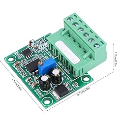 - Specification: Item Type:Frequency to Voltage Converter Module Size:4.5 x 4.7 x 1.7cm / 1.77 x 1.85 x 0.67in Relationship,Linearity: 20Hz to 1V 100hz to 5V 200hz to 10V Package List: 1 x Converter Module Note: 1. The multi-turn potentiometer on the board is used to calibrate the corresponding relationship between frequency and voltage. 2. The input power supply voltage range is 12-30VDC. It is recommended that the power supply voltage be 15-24VDC. When the 12V level is used, the power supply cannot be powered by 12VDC. At least 15VDC power supply is required. If you need to use 12V power supply, you can also order 12VDC. Power converter. At 24 levels, the power supply needs to be powered by 24VDC 3. The input end is isolated by diaphragm. Guaranteed anti-interference ability. 4. If you need to use PLC, support NPN type. Must have a ground wire. 5, if you need to use the encoder, the encoder is required to continue to rotate at a constant speed for more than 0.5 seconds. 6, frequency and voltage conversion module, response time is about 0.3-0.5 seconds. 7. If the input is turbine , etc., due to matching, an 817 diaphragm and a resistor must be added to match the flowmeter to normal function. 8. in use If there is a deviation, you can adjust the blue potentiometer on the board to calibrate. At the time of shipment, we have adjusted the F/v potentiometer to a certain . It is generally not recommended to adjust it by itself.