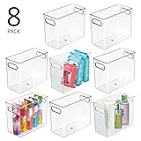 mDesign Tall Modern Stackable Plastic Storage Organizer Bin Basket with Handles for Bathroom Vanity Organization - Shelf, Cubby, Cabinet, or Closet Organizing Decor - Ligne Collection - 8 Pack - Clear