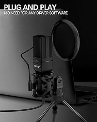 Micrófono USB, XIIVIO Micrófono de computadora para PC Gaming Micrófono de condensador con soporte de trípode y filtro pop para grabar voz en off, streaming, Twitch, podcasting, compatible con computadora portátil de escritorio