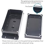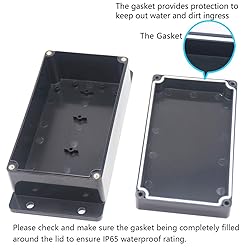 IP65 Waterproof & Dustproof Rating: Solid construction and IP65 waterproof & dustproof rating to protect against dust, corrosion and splashing water, durable for years use Outer Size of project enclosure: 6.22'' x 3.54'' x 2.36''(158X90X60mm)(L*W*H); Inner Size of electronic enclosure: 6.0" x 3.2" x 2.2"(151X82X55mm)(L*W*H)- - (Allowable Error: ±2mm) High Quality Material: Made of ABS material, Sturdy and terrific for making those DIY projects. Easy to drill and shape openings for many items like meters, LCDs, sockets, LEDs, buttons and so on. Upgraded design: fixed ear on the bottom is easy for mounting on the wall, comes with stainless steel screws to avoid rusting troubles. Multifunctional screw hole design at the bottom for various DIY creations. Package Content: 1 x Junction Box, 1 x Rubber Grommet, 4 x Screws