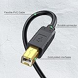 Ideal USB Printer Cable: USB 2.0 printer cable is perfect for connecting various USB devices such as scanners, printers, servers, hard drives, cameras, pianos, and more to your laptop, computer (Mac/PC), or any USB-enabled device for seamless data transfer High-Speed Transfer: Up to 480 Mbps transfers data speed for USB 2.0 devices, the printer usb cable is backward compliant with full-speed USB 1.1 (12 Mbps) and low-speed USB 1.0 (1.5 Mbps). Compared with a WIFI connection, this usb b to usb a cable provides a more stable data transmission ,say goodbye to unreliable WiFi connections and experience a more stable and efficient way of working Wide Compatibility: This usb b cable compatible with HP deskjet 2540 / 3630, HP officejet 5740, HP Envy 4527 / 4520 / 4523 / 5540, HP photosmart 7520 / 5520 / 5510, Canon MG5750 / MG3550 / MG7550, Epson XP225 / XP245 / XP425, Brother DCP-L2520DW, Lexmark MX310DN, Dell C2665DNF, Samsung Xpress SL-C1860FW, Oki ML1120 / 511DN, Schiit Modi 2 Uber, Yamaha digital piano, DAC, etc Premium Quality Printer Cable: Our printer cord is built to last with corrosion-resistant gold-plated connectors and fully PVC shielding. This ensures long-term performance without any noise or signal loss, providing you with a reliable and uninterrupted data transfer experience What You Get: The usb b printer cable. Plug and Play, No Driver Required. Important Note: This printer USB cable has a USB 2.0 Type B Interface, not USB 3.0 Type B