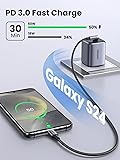 Upgraded Unique Right Angle Design: The right angle design makes watching movies, reading books and playing games more convenient and comfortable while charging your phone. [Note: The maximum thickness of the phone case allowed is 2mm/0.08inch.] 60W Fast Charging: The 90-degree USB C to USB C cable output quickly charges your iPhone 15 to 60% in 30 minutes, or charges your 13" MacBook Air in 1.5 hours when paired with a 60W PD charger. Backward compatible with 45W/30W/20W chargers Wide Compatibility: This Type C fast charging cable is compatible with most USB-C port devices, such as mobile phones (iPhone 16 series, Samsung S24/23/22/21, Google Pixel 8/7), tablets (iPad Air 5/4, iPad Mini 6, Galaxy Tab A9+), laptops (MacBook Air/Pro) Transfer Files in Seconds: This 60W USB C to USB C cable provides transfer speeds of up to 480Mbps, moving 1GB of movies, music, documents, or entire photo libraries in less than a minute.[Note: Video output and monitor extension are not supported.]