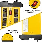 Iron Forge Cable 10 Outlet Heavy Duty Surge Protector Power Strip with Built-in Circuit Breaker, 14/3 SJT Black & Yellow with 15 ft Extension Cord