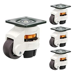 - Can you imagine that leveling casters easily solve to the tradition problem of how do I make object completely stationary and still have the ability to move it into position when you would like to. Each leveling caster has 110 lbs capacity, it can be held stably 330 lbs machine on uneven floor. So it is great for holding the heavy machine, work benches, electrical devices, kitchen island, welding table and other heavy equipment. Specifications: Color: White Finish Material: High-grade steel, heat dissipation aluminum and rubber Top Plate size: 2.9" × 2.9" (73.8mm ×73.8mm)(L×W) Bolt Holes Distance:1.65"× 1.65" (42mm×42mm)(L x W) Mounting Hole Diameter:1/4" (6.5mm) Wheel Diameter:1.54" (39mm) Installed Height:2.8" (71mm) Adjustable Height:0.39"(10mm) Package Includes: 4 × 40F Leveling machine casters