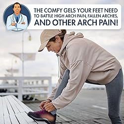 Reusable Peel & Stick Arch Support Inserts: Experience superior arch support inserts for women and men, designed to relieve foot pain and enhance comfort all day. These high arch support inserts stabilize your foot alignment, reducing strain and improving posture during walking or standing. Ideal for those with flat feet or plantar fasciitis, the soft TPE gel insoles absorb shock and pressure, providing long-lasting comfort and relief for daily wear. Active Lifestyle Comfort & Support: Our gel arch support inserts deliver targeted cushioning for the arches of your feet, easing pressure and fatigue from prolonged standing or activity. Made from flexible, silicone gel and durable materials, they adapt to your unique arch shape for personalized comfort. Perfect for plantar fasciitis pain management, these inserts improve balance and help prevent foot strain while you walk, jog, or work. Perfect for use in gyms, clinics, or workplaces where you’re constantly on your feet. Custom Fit & Advanced Cushioning: Engineered with a non-slip adhesive backing, these arch supports stay securely in place inside your shoes, heels, sandals, or sneakers without uncomfortable shifting. Easily repositionable and designed for reusability, they can be washed and reused for lasting durability. Their high arch support cushioning promotes natural foot alignment, helping reduce discomfort from flat feet and enhancing walking comfort all day. Physician-Developed Arch Relief Design: Whether you’re on your feet at work, running errands, or exercising, these arch support insoles provide stability and cushioning for optimal foot arch support. They reduce pressure on the heels and arches while promoting proper alignment to alleviate discomfort from flat feet or plantar fasciitis. Lightweight and thin, they fit seamlessly inside most footwear to deliver invisible-yet-powerful support. Can be used as an alternative to bulky orthopedic insoles. Long-Lasting Comfort & Easy Care: Designed for active lifestyles, our arch support shoe inserts help relieve pain and improve comfort for both men and women. Ideal for nurses, athletes, and anyone who stands long hours, these gel insoles for women and men combine cushioning comfort with strong arch support for lasting performance. Washable, reusable, and easy to apply—your step toward better foot health starts here.