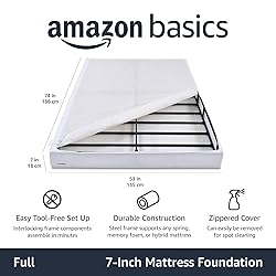 Amazon Basics Sturdy Smart Box Spring Bed Base, 7-Inch Height Mattress Foundation, Tool-Free Easy Assembly, Full, 74" x 53" x 7", White