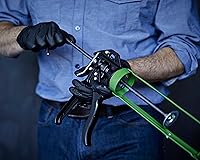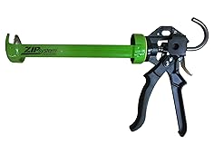Professional-grade 10.3 oz. high-thrust ratio caulk gun Thrust ratio of 18:1 for use with ZIP System 10.3-ounce liquid flash Zinc alloy handle and trigger for corrosion resistance; engineered ergonomic grip to the wrist in a natural and balanced position Revolving frame allows cartridge to rotate for maintaining bead orientation when caulking around corners Smooth pressure rod requires less force and is quieter than a ratchet-style pressure rod