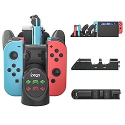 Fast Charging Dock for Nintendo Switch Controllers – Charge 4 Joy-Cons and 2 Pro Controllers simultaneously with this Nintendo Switch charging dock, perfectly matching the original Switch dock for stable power supply and quick charging Organizer & Space Saver for Nintendo Switch – This Switch controller charger dock keeps your Joy-Con controllers, straps, and Nintendo Switch dock neatly stored, saving desk space while adding a sleek, organized look to your gaming setup Clear LED Charging Indicators – The Nintendo Switch Joy-Con charger dock features bright icons that turn red while charging and green when fully charged, making it easy to check your controllers’ status at a glance Easy Plug-and-Play Setup – Simply connect the charging dock to your Nintendo Switch dock, insert Joy-Con or Pro controllers, and enjoy a hassle-free charging experience with clear indicator lights Durable & Stylish Gift Choice – Made from premium materials, this Nintendo Switch charger dock is sturdy, functional, and visually appealing, making it the perfect gift for family, friends, or gaming enthusiasts