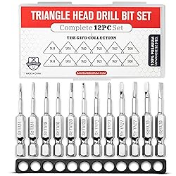 Triangle Drill Bit Set (PREMIUM 12pc Complete Set) /w Storage Case and Bit Holder - TA14 - TA30 1/4in Hex Shank Magnetic Bit Set - THE GIFD COLLECTION - Fortified S2 Steel - Long 2in Heads for Drills