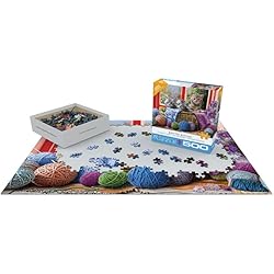 • Strong high-quality puzzle pieces. Made from recycled board and printed with vegetable based ink. Box size: 8 x 8 x 2.37. Finished Puzzle Size: 19.25 x 26.5. 500-Piece Puzzle. Three cute kittens are up to mischief as they explore basket full of yarn balls.