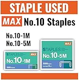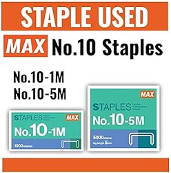 - The MAX HD-10FL3 is a flat clinch mini stapler, which staples 2 to 25 sheets with 50% less effort. The flat clinch mechanism bends the staple flat allowing papers to stack neatly and evenly. You can save up to 25% of filing space. The staple closes completely flat eliminating the crimps and curls of conventional stapling. No bent or crushed staples. MAX staplers fasten smooth and flat with no protruding edges that can snag and scratch. Ergonomic styling provides comfortable stapling. Storage for spare staples (maximum 100 staples). This stapler has one touch easy open loading and can load 100 #10 staples. Uses MAX 10-1M or 10-5M. Built-in Staple Remover.