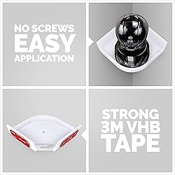 UNIVERSAL CORNER TILTED SHELF MOUNT: Need to see your entire room, not miss anything, have no blind spots, then our tilted shelf is the ideal product for you. Designed to work with almost any home security camera, baby monitor, pet camera & most other types of home & personal camera systems. Please check dimension chart for compatibility. DRILL FREE, NO SCREWS IN THE WALL: Easy to install, using super strong 3M VHB Tape, our shelf can be installed in minutes without the need of any tools. No damage to your walls, no calling a handy person, simply remove the adhesive backing, mark out where you want to put the shelf, press into place and your done. It is recommended to wait at least 2hrs before installing camera on shelf so that adhesive reaches max bond strength. YOUR CAMERA WON'T SLIDE OFF: Our unique cable access design also acts to securely hold your camera in place, stopping it to slide off. We also include a universal camera screw and extra VHB tape for other mounting options. SUITABLE FOR MANY PRODUCTS: Can be used with Yi, Wyze, Infant Optics, Motorola, Babysense, Wansview, Google Nest Cam, Microsoft Cam, Foscam & More!! Suitable for almost all products, check dimension chart. IMPORTANT: Strongly recommend to allow 2hr+ after installing before placing camera on shelf, allow enough time for adhesive to bond. DON'T INSTALL ABOVE CRIB OR BED, NOT RECOMMENDED FOR WALL PAPER, PAINTED OR PLASTERED WALL.