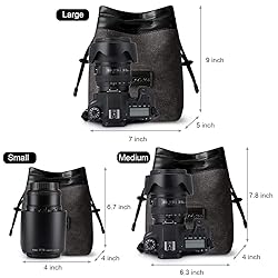 ✤Material: Soft faux suede outside + Polar fleece interior + Drawstring closure; High-quality camera case with a good feeling and convenient to carry ✤Features: This drawstring bag designed to store camera or camera lenses, which are Dust-proof, Scratch-proof, and Anti-static ✤Available in Multiple Sizes: The dimension of this MEDIUM camera bucket bag is 6.3 x 4 x 7.8 inches; you can store your camera lens, SD cards, wallet, cosmetics, or other small items. And we also have three sizes for you to choose from. (Please refer to the size chart before purchase) ✤Light & Convenient: The camera lens handbag is very light and foldable; you can quickly put it in your messenger bag, backpack, or suitcase, which is easy to store and save space ✤Best Choice for Camera: If you are looking for a soft and compact camera storage bag for traveling, sightseeing, hiking, etc., this lens case is your fantastic choice