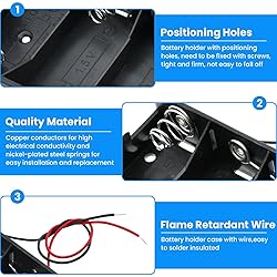- 2-Slot C Cell Battery Holder with Wire Leads Material : ABS plastic shell + Copper contact + nickel-plated steel spring Clip Battery Type : 2 x C Cell Battery / 3V Size : 54.3 x 59.4 x 22.4 mm (L*W*H) Color : Black Cable Length: 15 cm / 6 inch Package Includes: 2 pcs 3V 2 x C Cell Battery Case
