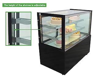 LED LIGHT ☛Eye catching internal LED lighting will highlight your most popular products and draw the customer’s attention to the cooler with its delightful treats. SPACE SAVING ☛Designed for Floor Standing use, the refrigertated display case is a space-efficient solution for bakeries, cafes coffee shops, and convenience stores. Overall dimensions: 47*25.6*46.5inch (120*65*118cm). DIGITAL CONTROLS ☛Automatic defrost feature and a digital temperature control and display ensure consistent temperature, temperature range 39.2℉-50℉(4℃-10℃). HARD GLASS ☛The glass is tempered glass which is rigid, durable and will provide a clean environment. SLEEK DESIGN ☛Durable tempered glass with Rear sliding doors and a black exterior make this an attractive bakery display case that will enhance your overall décor.