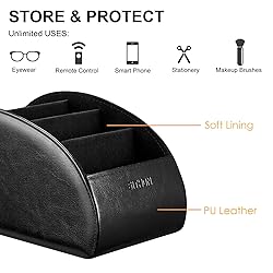 Upgrade Version: The large size has a larger capacity to storage all kinds of remote controllers for cable box, for Roku, for Apple TV, for Amazon Fire TV, for soundbars, smart phones, such as for iPhone 11/11 Pro/11 Pro Max/XR/XS Max/XS/X/8/8 Plus/7/7 Plus, for Samsung Galaxy S10/S10 Plus/S9/S8 Edge/Note 9,for LG,for Google,for Huawei and more, keep your home and office decor looking stylish. Large size: 7.87”(L) x 3.93”(W) x 3.93”(H) Ideal for keeping all your favorite remotes close at hand and easily identifiable. Save time and stress and space saving. Crafted with soft lining interior and premium exterior for lasting performance. Provides protection for the remote against scratches, greasy dirt and abrasions. Widely application great for table, restroom, dining room, living room, study room, bedroom, nightstand and office uses Multi-functional usage with 5 compartments. Can be used as stationeries, glasses, cell phones or cosmetics brushes storage solution. Great gift for women, men, adults, teen girls and boys on valentine’s day, birthday, thanksgiving, christmas or any other anniversary.