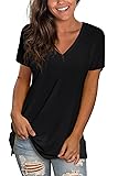 Sipaya Womens T Shirts Basic V Neck Tee Loose Fitting Casual Short Sleeve Tops