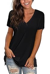 Fabric - Breathable,Light Weight,Stretchy,Soft and Comfy,Quality. Don't shrink after number of washes, this v neck t shirts keep you cool during hot weather Design - Basic Casual V neck T shirt,simple solid and floral print,trendy and elegant. Pefect wear with jeans or leggings in spring,summer,fall or winter. WASHING CARE:machine wash or hand wash in cold water, no insolating,no bleaching, don't heat dry Before you buy it Please check the size chart carefully. Please refer to the picture on the left or the product description.