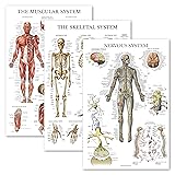 - 3 Pack - Muscle + Skeleton + Nervous System Anatomy Poster Set - Muscular and Skeletal System Anatomical Charts - Laminated 18" x 27"