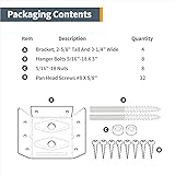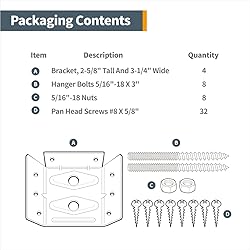 INCLUDES: Surface Mount Table Apron Corner Brackets (4 piece set) with mounting hardware screws, nuts & bolts APPLICATIONS: These mounting brackets are designed to produce a quick, sturdy and secure connection of the table legs and apron (skirt) to the tabletop – ultimately delivering optimal support and stability for old table repairs and/or hand crafted table reinforcements EASY TO INSTALL: Utilizing a double hanger bolt configuration, which eliminates leg wobble, the bracket offers a straight forward installation and comes with the individual mounting hardware required, including hanger bolts. PREMIUM BUILD: Our table apron brackets are engineered with thick, 18 gauge steel which possesses reduced susceptibility to denting, while possessing maximized strength and long-term durability DIMENSIONS: 2-5/8" x 3-3/8" Flat