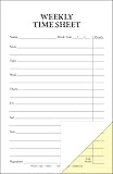 Keep track of employee hours with these Weekly Time Sheets Perfect for any business with weekly employees, including work from home or remote employees Size is 5. 5" x 8. 5", pack of 250 sheets Printed in Black ink on 2 part Carbonless Paper (White & Yellow Copy - one for office, one for employee's personal records) High Quality Printing, Made in the USA