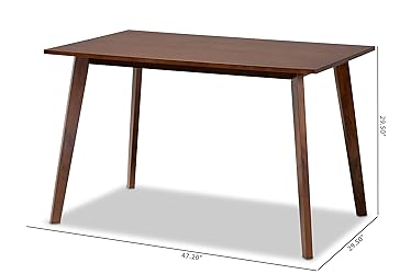 Mid-century modern dining table seats up to four (4) Constructed from rubberwood Walnut brown finish Rectangular tabletop Splayed legs Included Components: Dining Tables Components