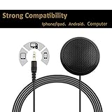 【Stereo & Clear Sound】Offers crystal clear voice capturing on meeting calls with 360°sensitivity pickup range(3m/10ft), 10 times better than a traditional computer microphone. 【Works Perfectly】The 3.5mm microphone is very small but powerful. Use it for Skype and online conferences, usually place it in front of you when you talk, but even if I leave it far, they can still hear the voice very well. 【Compact & Portable】The portable design makes the microphone take up less space. In a small size as your hand's palm and space-saving, and you can put it in your pocket or briefcase and take it wherever you want. (It's just a microphone, not a speaker). 【Plug & Play Directly】This conference microphone for PC is so easy to use. It's designed to plug & play. You don't have to install any software or complex settings. Just connect to your Desktop or Laptop computers and start your video conference or gaming. 【Widely Use】This conference microphone has a multi-purpose use, such as online meeting/teaching, business/family video calls, ideal for small group meetings, and virtual learning.