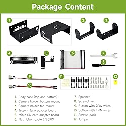 Metal Case Specialized For Jetson Nano 4GB Developer Kit Special Camera Holder Mounting Holes For Single Camera Or Binocular Camera, Up To 180° Roll Angle Invisible Cooling Fan Heat Dissipation Through The Airflow Vent On The Top, More Elegant Design RESET And POWER ButtonsWith System Status Indicator (B01 Only, NOT Available For The Original Version) Enabling The 4G Communication Allows Installing 4G Module Inside