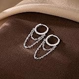 Reffeer Solid 925 Sterling Silver Tassel Chain Drop Dangle Small Hoop Earrings Huggie for Women Teen