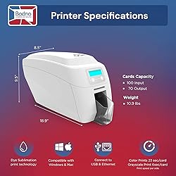 ALL-INCLUSIVE PACKAGE: Start printing immediately with the Magicard 300, supplies, and a 300-print ribbon for vibrant card printing. 300-PRINT YMCKO RIBBON INCLUDED: The package includes a 300-print ribbon, making it easy to start producing sharp, colorful ID cards. DUAL-SIDED PRINTING: Supports dual-sided printing for more comprehensive card designs, also compatible with both Windows and Mac. BODNO SILVER EDITION WITH ONE-TIME LICENSE AND ACTIVATION CODE: Expands on Bronze features by adding functionality to auto-create cards from Excel or CSV files, enhancing productivity. 3-YEAR WARRANTY & LIFETIME SUPPORT: Comes with a 3-year limited warranty on the printer and lifetime support for Bodno software.