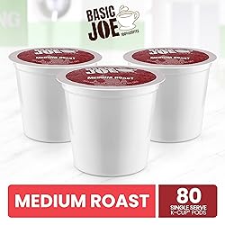 80 medium roast coffee pods Fits Keurig K-cup brewers Made in the USA Kosher Certified Basic Joe Single Serve Cups Fit Perfectly in Keurigs and Most Conventional Coffee Makers for Great Coffee Pod Functionality