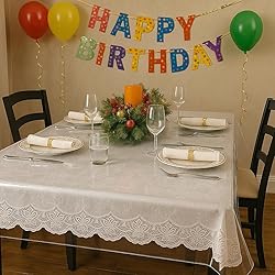Crystal Clear Protection – Transparent vinyl design lets the beauty of your table or tablecloth shine through while adding a durable layer of defense. Shields Against Spills & Stains – Protects from food, drinks, and messes; simply wipe clean with a damp cloth for quick, easy maintenance. Durable & Long-Lasting – Made from heavy-duty clear PVC plastic that resists tearing, staining, and daily wear. Finished Hemmed Edges – Designed with a neatly hemmed border for a polished look that complements both casual dining and special occasions. Everyday & Special Occasions – Great for dining tables, buffets, family meals, parties, and holiday gatherings.