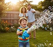 CREATES A SEA OF BUBBLES: A bubble blower toy that produces a stream of bubbles! With a realistic design and cool touch of color, this bubble maker is the stuff of smiles. Just pop in 3 x AA batteries (not included), press the trigger and fill with bubble solution to get the fun started. DEVELOP THEIR SKILLS: Bubble toys don’t just add a touch of magic to sunny days, it also encourages physical activity as they play. They’ll get to hone gross motor skills as they chase & pop bubbles, and visual tracking skills as they watch bubbles float away. This kids bubble machine is a must have for kids to encourage active play. SPARK CREATIVITY: This 14.5” bubble machine for kids doesn’t just blow bubbles; it also produces mechanical sound effects to amplify the sports & outdoor fun. Little ones will love helping out in the yard and getting in some healthy exercise as they channel their inner gardener. Perfect for toddler boy toys that inspire creativity and make outdoor play magical for your bubble boy. AWESOME GIFT IDEA: Looking for a fun outdoor toddler toys? A cool Birthday or holiday gift for that adorable kiddo? Treat them to this unique bubble toy and watch them beam. This bubble machine for toddlers 1-3 years old and kids ages 3 and up is a great choice. BUBBLE SOLUTION INCLUDED: No need to spend extra on bubble fluid. Our bubble leaf blower toy comes with 3-4oz. bottles of bubble solution to fuel hours of fun. Built to last through hours of energetic play.