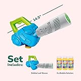 - CULTIVATE THEIR IMAGINATION WITH THIS UNIQUE BUBBLE TOY Hours of Glee What do you get when you combine a kids’ leaf blower with bubbly fun? A toy little ones simply won’t get enough of! Our all-new bubble leaf blower is the stuff of smiles. It looks like a leaf blower, sounds like one, and produces delightful bubbles at the press of a trigger. Have a kiddo that loves helping out in the yard? This bubble leaf blower is the perfect treat to keep them busy as they tap into their imagination and create a world of make-believe. Looking for a fun toy to get kids off the couch and out on the yard having an active blast? This is it. Easy to Use Designed with kids in mind, using this bubble blowing leaf blower toy is a breeze. Just pop in 3 x AA batteries (not included), attach the bubble bottle to the blower, squeeze and hold the trigger for 30 seconds, and watch the air fill up with a continuous stream of bubbles. And in the spirit of giving you the best bang for your buck, we’ve included a 4oz bottle of bubble solution to get the fun started right away. Shopping around for a great Birthday or holiday gift for that active kiddo? You’ve found it! Here’s why you’ll love this leaf blower bubble toy: ✔Has a realistic leaf blower design for eye-catching fun.✔Comes with 3 bottle of bubble solution for immediate fun.✔Produces mechanical leaf blower sounds for imaginative play.✔Makes a great gift for boys and girls ages 3+.Keep that active kiddo occupied for hours with this ultra-fun bubble leaf blower toy!