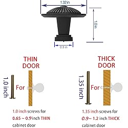 The classic round design of these knobs brings a TIMELESS ELEGANT, while the 3D-lines sunburst pattern add rustic charm and vintage texture. These knobs can easily fit into farmhouse-style kitchens, whether it's a modern farmhouse with sleek finishes or a more traditional farmhouse with rustic details FLAT black cabinet knobs are like chameleons—they blend in with any style, from modern to classic, without stealing the show LIFETIME: They’re made from solid die-cast zinc, and their polished surface with an oil coating ensures durability and resistance to rust. Practical and reliable! ERGONOMIC: a balanced size (1.25 inches diameter and 1 inch height) and a heavy weight of 32g each, which bring a luxurious or upscale look in your cabinetry ALTERNATIVE screws (1.0-inch screws for 0.65 ~ 0.9 inch THIN cabinet door; 1.35-inch screws for 0.9 ~ 1.2 inch THICK cabinet door)