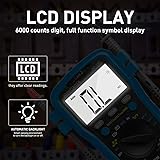 Smart Digital Multimeter, AC DC Voltage Current Meter 6000 Count, Auto Range Multi Tester for Volt Amp Ohm Continuity Cap Resistance Diode/hFE Test, Electrical Measuring Tool for Car, Home, Industry