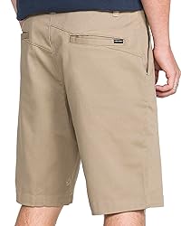 - The Volcom Men’s Vmonty 22" Chino Shorts combine comfort, durability, and timeless style. Crafted from premium cotton twill, these relaxed-fit shorts feature Volcom’s signature double asymmetric back yokes and back leg Stone embroidery. With a 22” outseam that hits just below the knee, they deliver a clean, modern fit ideal for daily wear. Functional details include two front hand pockets, two back welt pockets, a branded shank button, and a secure zipper fly closure. Designed for consistency and comfort, the Vmonty short is built to move with you from casual days to active weekends.