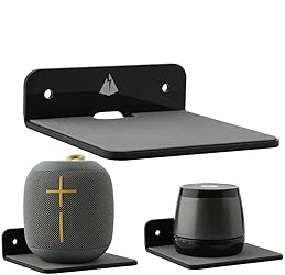 • Universal Compatibility: Suitable for All Small portable speakers even with an outer case, hold speakers or smart devices up to 800 g. Mount behind your bed with speaker/small toy/alarm clock on it. Convenient and attractive to hold Small Speakers/Smartphones/Mirrorless Camera/Monitor/Alarm Clock/Alexa/Smart Devices in room, kitchen,office etc.USB cord access hole with slot to position and conveniently retain plugs and cords.Easy to install: Please kind follow the picture instructions: Drill a hole in the wall; Put the expansion tube into the hole crew the screw into the expansion tube.Material: Acrylic,Screw; Dimensions: 4.25”(L) x 4”(W) x 1.26”(H);Package include: 1x Acrylic Wall Speaker Holder Mount